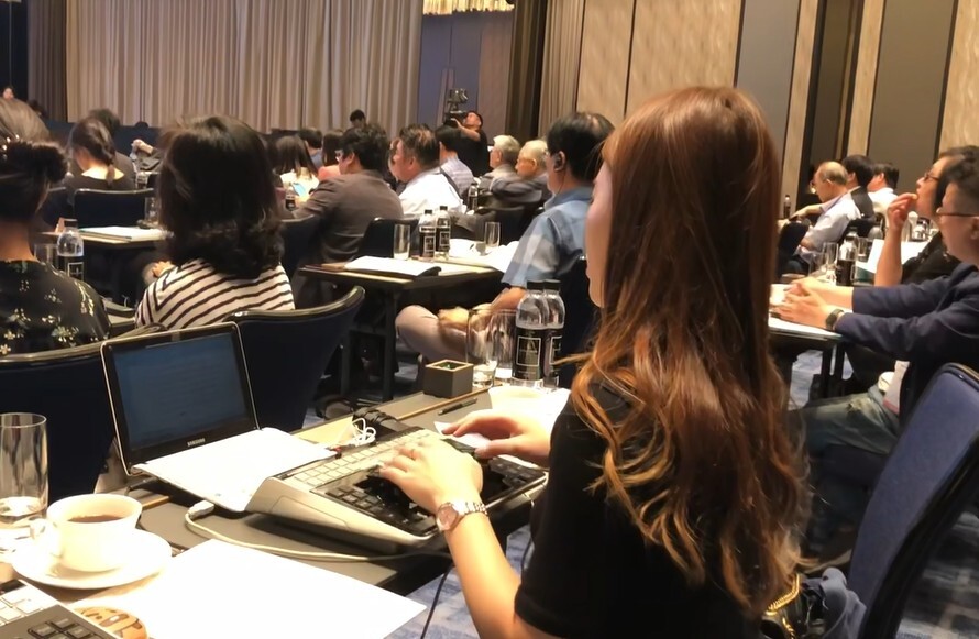 | 임종헌 속기사가 회의장에서 속기를 하고 있다./본인 제공 |