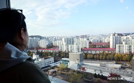 [사진= 18일 오후 서울 양천구 목동아파트를 바라보는 시민.]