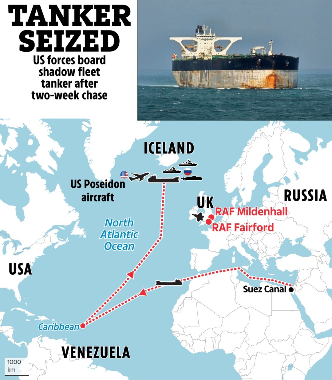 러시아는 해당 유조선이 아무것도 싣고 있지 않았다고 주장했지만, 미국과 영국 등 동맹국들은 그 배가 미사일과 같은 극비 군수 물자를 베네수엘라로 운반하고 있었을 가능성을 우려하고 있다.