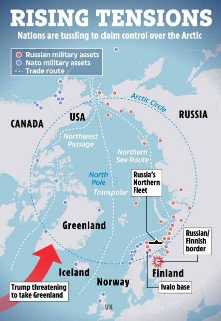 영국 더 선은 8일 미국이 그린란드를 차지하기위한 네가지 단계를 소개했다. 전문가들은 이미 미국이 점령을 시작했다고 주장하기도 한다. 미국은 마음만 먹으면 30분내로 그린란드의 수도인 누크를 점령할 수 있다고 한다.