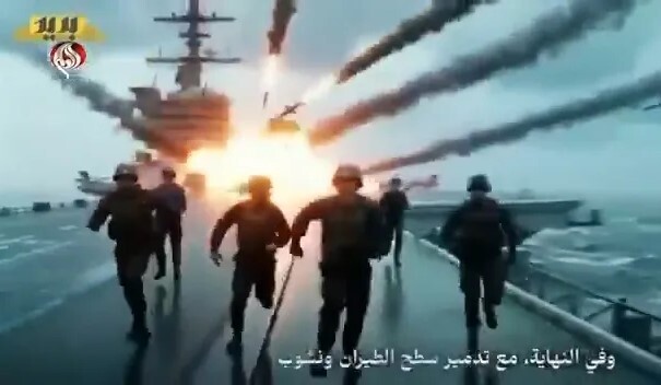 이후 이란 해안에서 미사일이 발사되는 모습이 보이고 잠수함, 드론이 어뢰를 발사하며 바다를 가로지른다. 다방면에서 가해진 공격으로 미 해군의 전력 증강은 큰 타격을 입었고, 인공지능이 생성한 미군 병사들은 공포에 질려 도망쳤다. 이란 군인들이 임무 성공을 축하하는 모습이 보이고 배경에는 연기와 불길이 치솟고 있다.