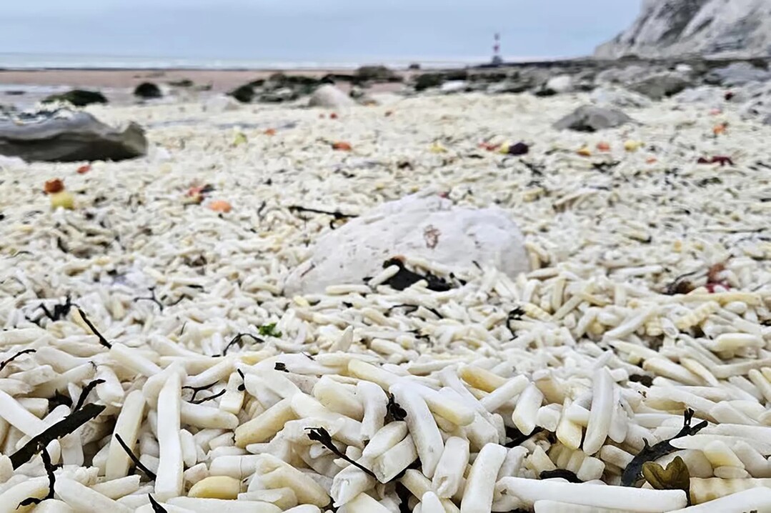 영국 더 선은 최근 수십만개의 튀기지 않은 프렌치 프라이재료가 해변가로 밀려왔다고 전했다.