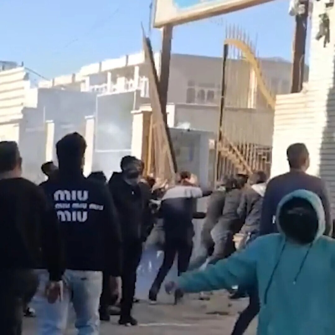 | 물가 상승 등 극심한 인플레이션에 항의한 이란 시위대가 관공서의 정문을 부수고 있다./소셜미디어 |