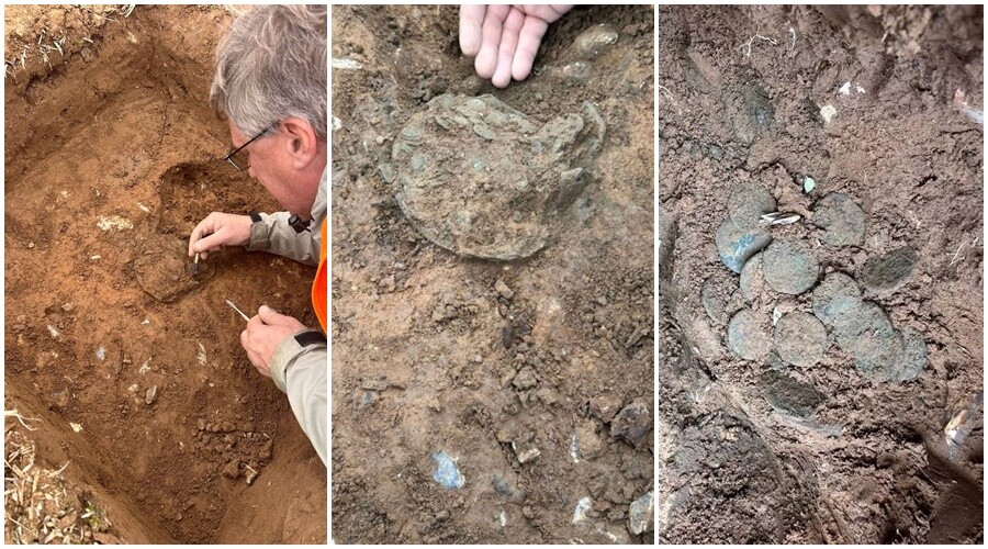 3명은 한 시간 동안 금속 탐지기로 수색을 한 후 들판 곳곳에 흩어져 있는 동전 몇 개를 발견했다. 계속해서 더 많은 동전을 파헤치다가, 마침내 땅속 약 30cm 깊이의 손상된 항아리에 상당한 양의 동전이 들어 있는 것을 발견했다.