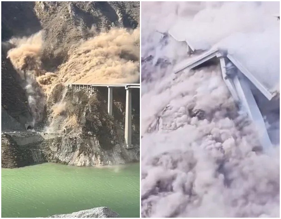소셜미디어에 올라온 영상을 보면 지난 11일 중국 남서부 쓰촨성의 홍치교가 거대한 산사태로 붕괴되는 모습이 담겨 있다.