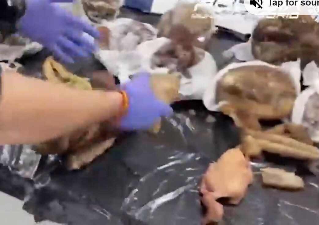 주방 내부 상황 역시 충격적이었다. 경찰관들은 라벨도 없는 유통기한이 지난 고기와 생선이 담긴 자루들로 가득 찬 부서지고 녹슨 냉동고 8개를 발견했다.