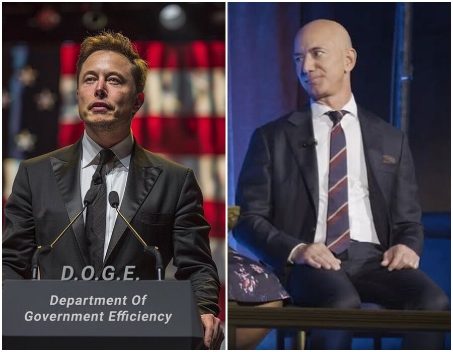 | 우주경쟁을 펼치고 있는 일론 머스크와 베이조스./소셜미디어 |