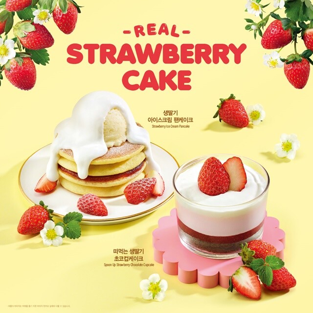 ‘생딸기 아이스크림 팬케이크’는 따뜻한 팬케이크 위에 딸기 시럽과 시원한 바닐라 아이스크림, 부드러운 플로팅 크림을 더해 풍부한 식감과 달콤하고 부드러운 맛이 조화를 이룬 메뉴다.