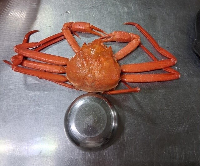첨부한 사진을 보면 홍게와 함께 크기를 짐작할 수 있도록 식당에서 사용하는 밥공기가 놓여 있다.