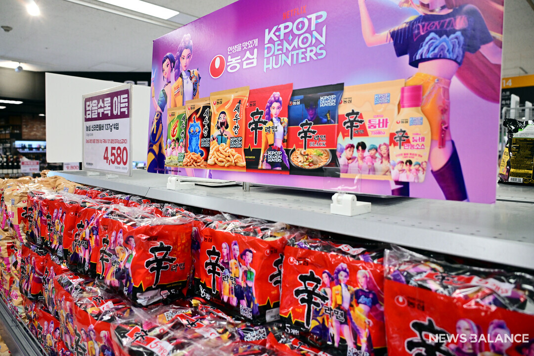 농심은 '케데헌' 과 협업한 상품을 글로벌 시장에 앞서 국내 선보인 상품은 소비자들의 폭발적인 반응을 얻었다. 지난달 29일 자사몰을 통해 공개한 '케데헌 한정판 신라면' 1000세트는 판매 1분 40초 만에 완판됐다.