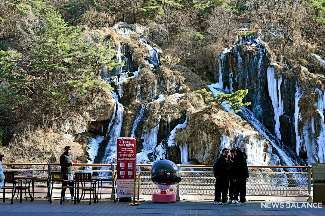 [뉴스밸런스 = 송재우 기자] 7일 서울 서대문구에 위치한 홍제폭포가 얼어붙어 있다.