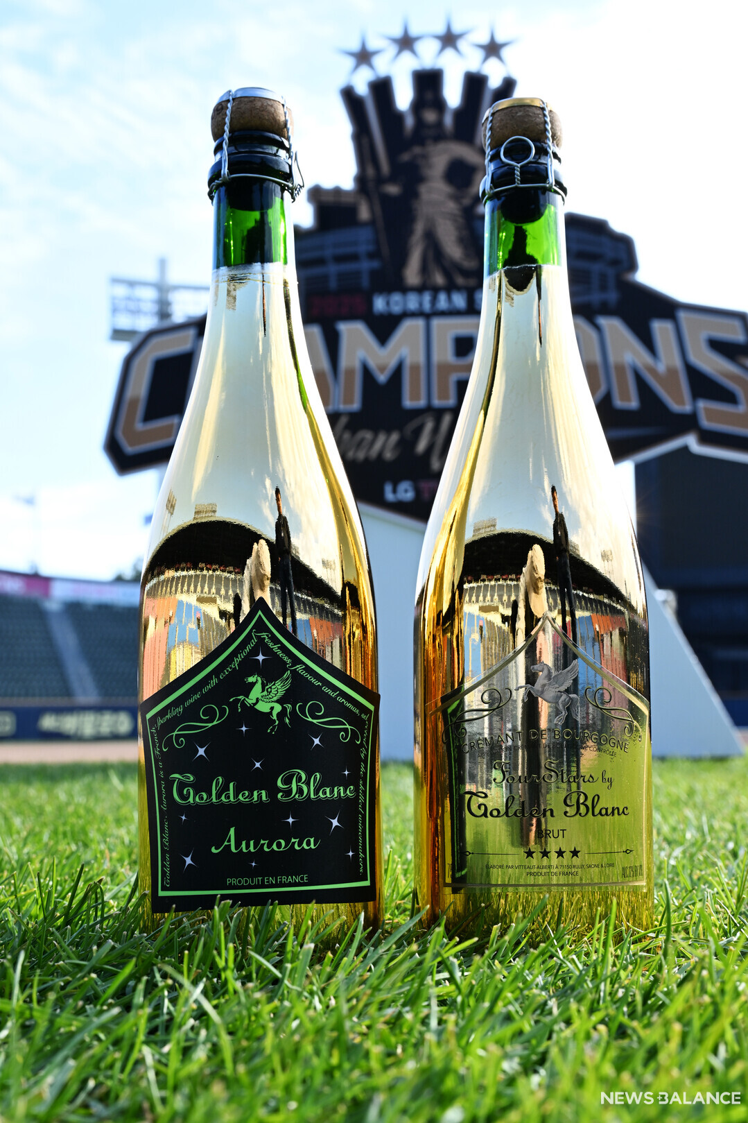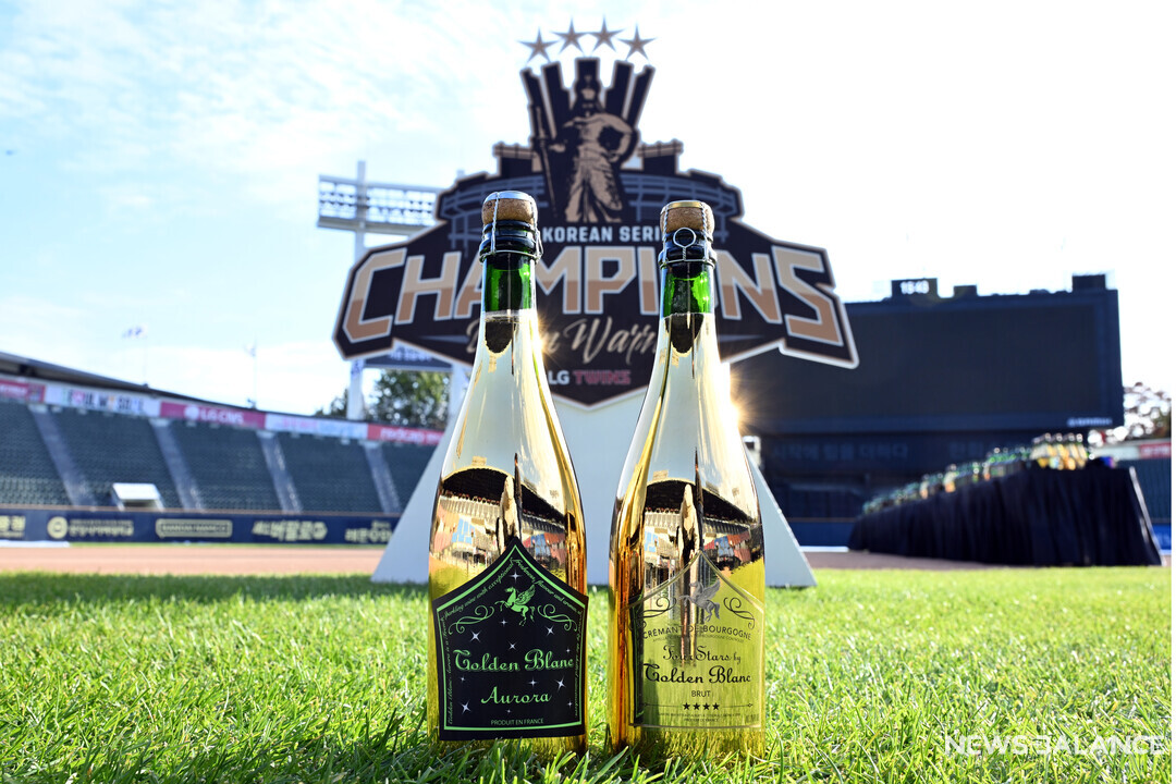LG 우승 세리머니 샴페인 샤워 '포스타 바이 골든 블랑'