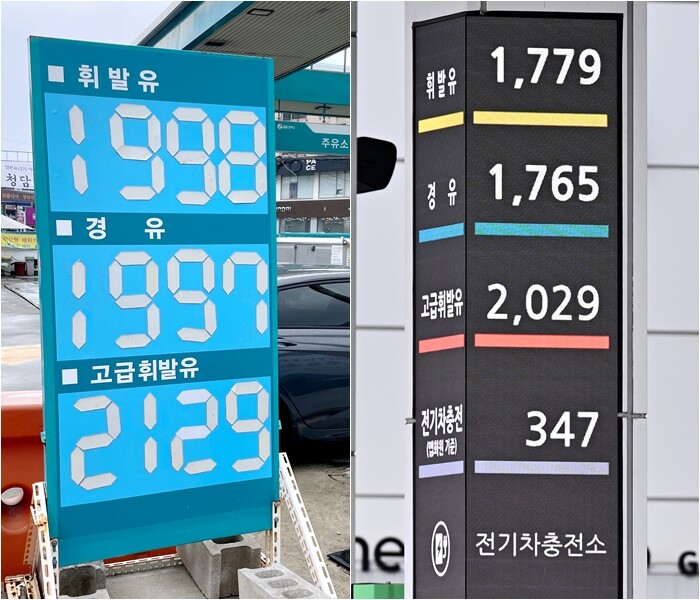 [뉴스밸런스 = 송재우 기자] 전국 주유소 평균 휘발유 가격이 L당 1천856.3원으로 전날보다 22.0원 상승(한국석유공사 유가정보시스템 오피넷 기준)한 가운데 6일 경기도 성남시에 위치한 같은 브랜드 주유소가 200원이 넘는 가격차이를 보이고 있다.
