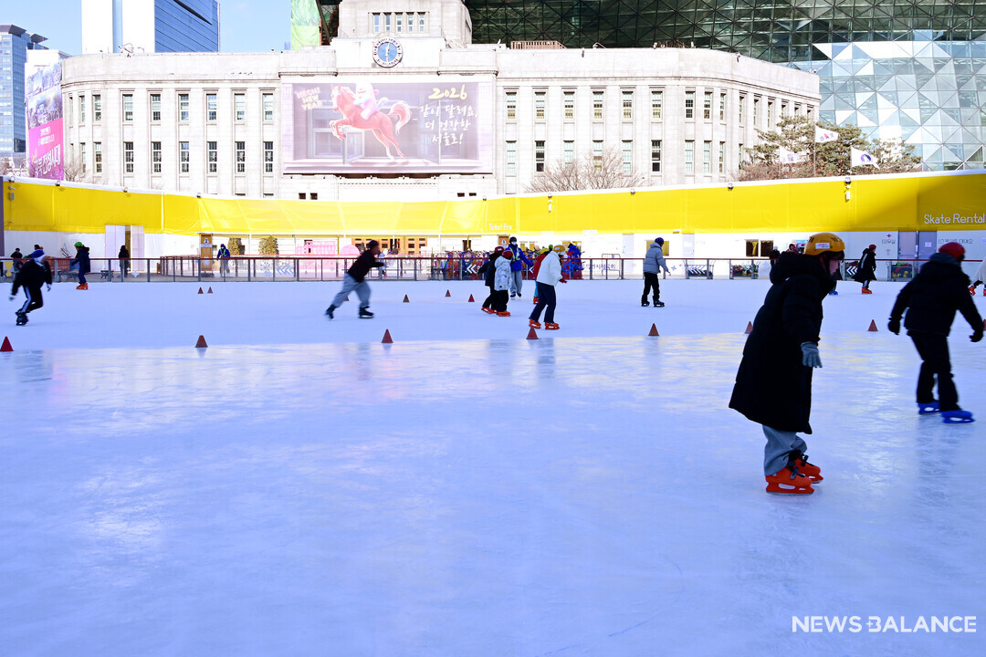 [뉴스밸런스 = 송재우 기자] 절기상 가장 추운 ‘대한’인 20일 서울 아침기온이 영하 13도까지 떨어지는 등 한파주의보가 내려진 가운데 서울광장 스케이트장에서 시민들이 스케이트를 타고 있다. [송재우 기자 sjw@newsbalance.co.kr]