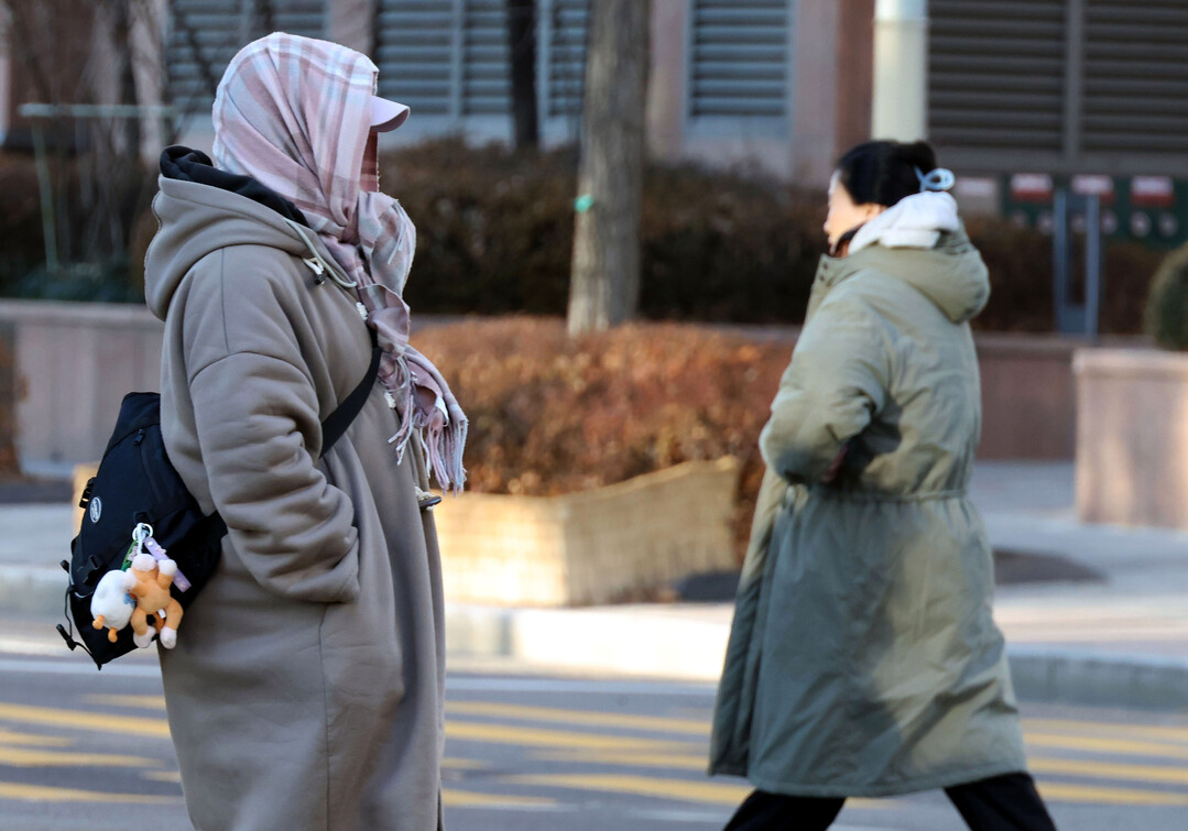 [뉴스밸런스 = 송재우 기자] 전국 곳곳에 한파 특보가 내려진 26일 오전 경기도 성남시 분당구 정자역 인근에서 시민들이 두꺼운 옷을 입고 발걸음을 재촉하고 있다.